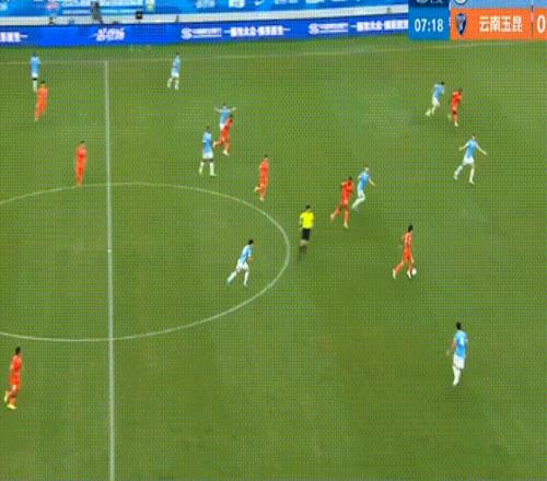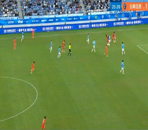 第20分鐘,徐新和葉楚貴精彩配合,徐新小角度射門打進,云南玉昆客場1-0領先。