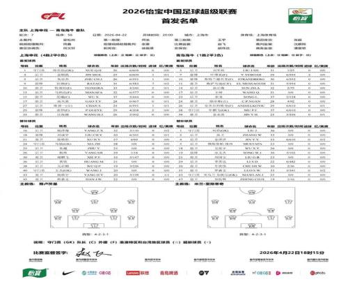 北京時(shí)間4月22日20:00,中超第7輪,上海申花主場對(duì)陣青島海牛。賽前首發(fā)公布。上海申花首發(fā):1-薛慶浩、13-馬納法...