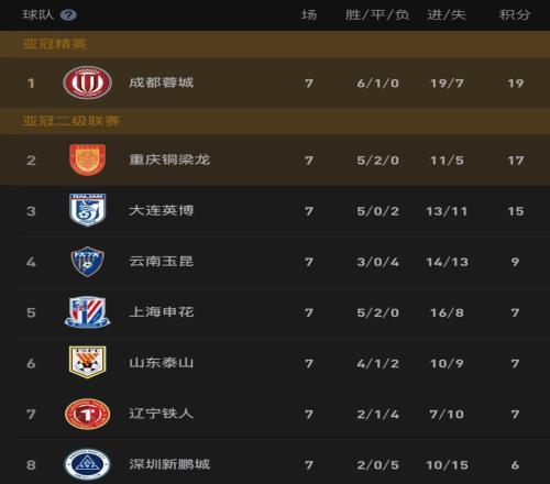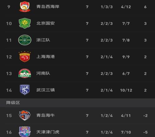 申花豪取4連勝并且開局7輪不敗,而海牛遭遇3輪不勝。由于前些年比賽涉及“假賭黑”,申花和海牛分別被罰扣10分和7分,因此7輪戰(zhàn)罷申花積分為7分升至第5位,而海牛依然是-2分,排名倒數(shù)第2位。