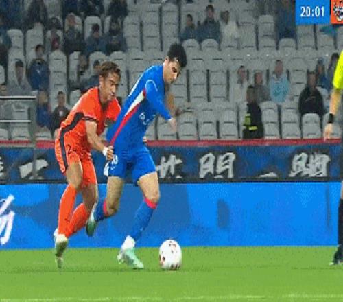 第17分鐘,葉博亞遠(yuǎn)射薛慶浩撲出,顏?zhàn)勘蚪嚯x補(bǔ)射被擋出。