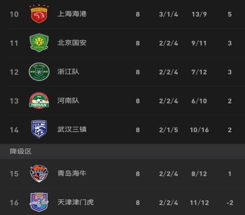 海牛更是憑借4-1大勝泰山的關(guān)鍵3分,成功在本輪過(guò)后積分轉(zhuǎn)正。而津門(mén)虎在本輪客場(chǎng)4-2力挫國(guó)安后,已經(jīng)有望在下輪擺脫負(fù)分的困境。
