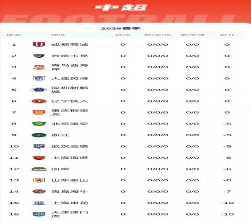 2026中超9隊負分開局