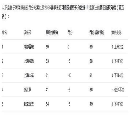 上港被罰5分依然比成都蓉城多1分冠軍不變!板子打得輕重剛合適