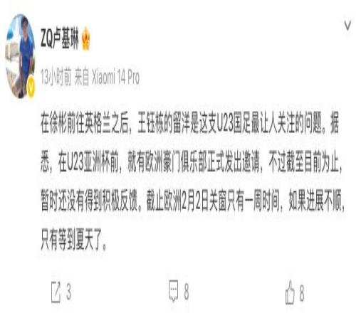 這也讓不少中國球迷熱切期待,作為U23國足頭牌的王鈺棟能盡快留洋歐洲聯(lián)賽,提升自己。