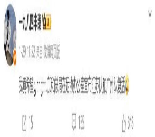 高薪+高獎(jiǎng)金,以及極其嚴(yán)苛的隊(duì)規(guī),讓當(dāng)時(shí)的廣州恒大球員和教練團(tuán)隊(duì)沒(méi)必要為了一點(diǎn)小錢(qián)而鋌而走險(xiǎn)。沒(méi)有從業(yè)人員涉事,更讓人惋惜廣州隊(duì)的解散。對(duì)此,記者豐臻在個(gè)人社交平臺(tái)上呼吁(下圖),我真希望足協(xié)宣布江蘇隊(duì)和廣州隊(duì)復(fù)活。