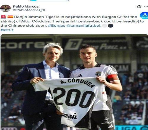 據(jù)報(bào)道,天津津門虎已經(jīng)與西乙球隊(duì)布爾戈斯就埃托爾-科爾多瓦的轉(zhuǎn)會(huì)達(dá)成協(xié)議,科爾多瓦將加盟天津津門虎。布爾戈斯主教練拉米斯在接受采訪時(shí)表示,科爾多瓦將不再隨隊(duì)前往客場(chǎng),他的離隊(duì)手續(xù)幾近完成,雙方俱樂(lè)部正在做最后的工作。