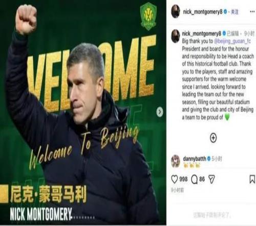 或許正是有了三個得力助手,再加上這段時間對球隊的了解,北京國安新任主帥蒙哥馬利在社交媒體上對新賽季北京國安的成績進行了展望,并且充滿了信心。在社交媒體上,他寫道,“非常感謝國安主席和董事會讓我執(zhí)教這家有著歷史底蘊的俱樂部,讓我倍感榮幸的同時,也感到責任重大?!贝送猓€對球員、教練組和球迷表示了感謝,并直言不諱的表示,自己會在新賽季帶領(lǐng)球隊用激情點燃主場,讓球隊成為這座城市的驕傲。
