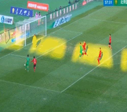 第一點(diǎn),王速表示是第57分鐘時(shí)北京國(guó)安曾經(jīng)打進(jìn)一球,卻因?yàn)楣ラT瞬間對(duì)方門將的倒地而被主裁判吹停了比賽。這到底發(fā)生了什么?我們看動(dòng)圖(下圖):林良銘帶球下底傳中,主隊(duì)門將撲球的時(shí)候被前插的曹永競(jìng)撞到了一起,并倒地不起。這個(gè)期間北京國(guó)安的進(jìn)攻并沒有停止。反而張稀哲的傳球還造成了林良銘的頭球破門,不過就在他跳起攻門的時(shí)候,主裁判的哨響了。